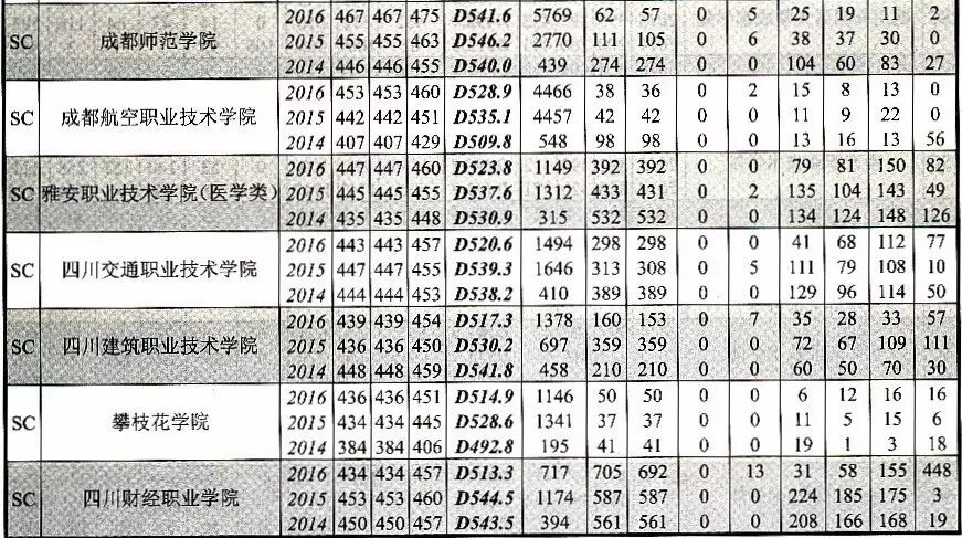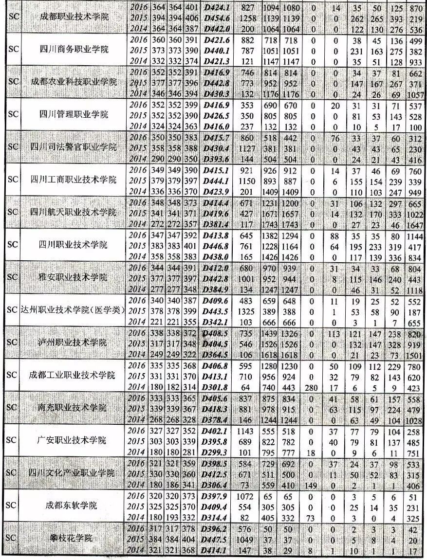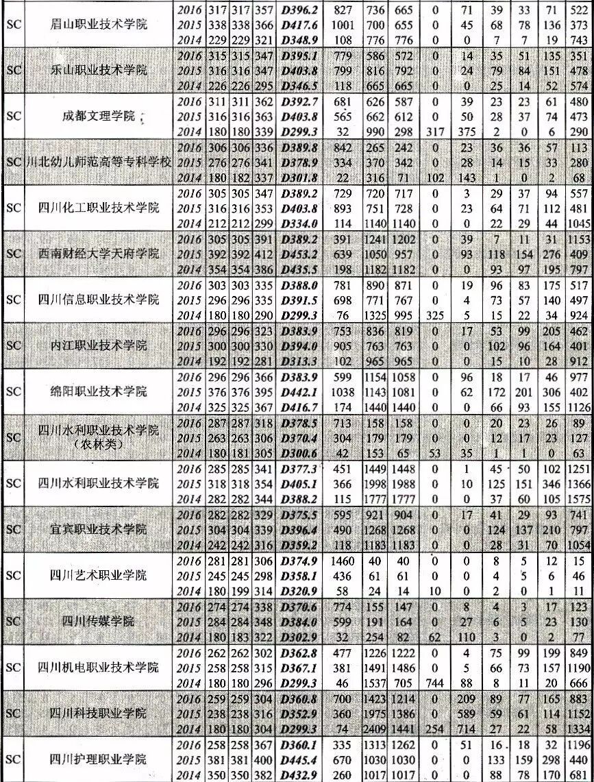 ▷注:2016年、2015年、2014年理科高专第一批批线分别为:390分、412分、390分