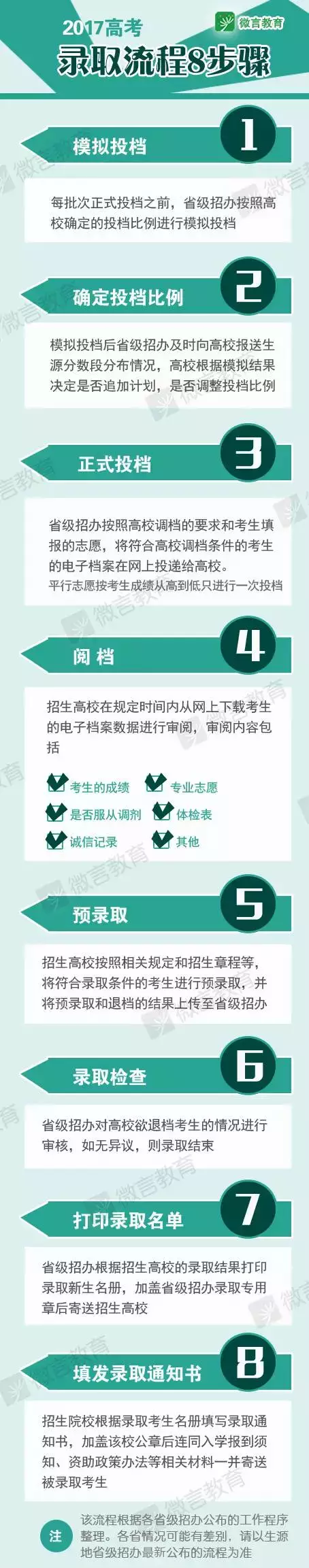 2017年高考录取正在进行,很多家长、考生都有疑惑:录取流程都有哪些?怎样查询录取结果?录取通知书何时能收到?小招今天再次为大家整理了高考录取的8个步骤和7个常见问题,考生和家长快搬好小板凳看过来啦。