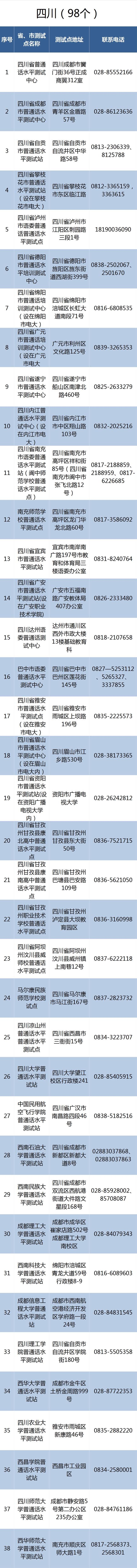 想测试普通话水平去哪里? 四川这些普通话水平测试中心具体地址在哪?如何联系? 在这里!赶快收藏吧!