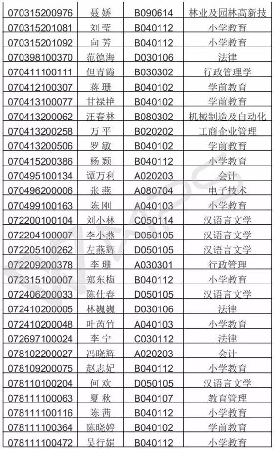 2017年下半年高等教育自学考试毕业生预提名单已于11月23日由四川省教育考试院公布,凡名单中的考生均可按照相关规定和要求提交毕业申请。名单如下: