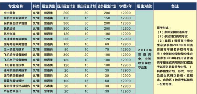 各位考生: 根据通航2018年招飞计划会议精神和四川西南航空职业学院发展规划,我院计划在全国招收直升机、定翼机飞行员,具体招飞工作公告如下: 一、招飞对象 三年制:参加2018年全国普通高考的考生,经我院面试、体检合格,且高考成绩达到各省(直辖市、自治区)2018年专科录取控制线以上,学院根据其高考成绩和面试情况进行择优录取; 二、招飞计划 (具体招生计划、代码以各省(直辖市、自治区)统一公布为准) 三、招飞条件 四、招飞须知 招飞时间:2017年12月23日——24日9:00-17:30 招飞地点:成都市金堂大学城学府大道996号学院招生处一楼 招飞提供: 本人身份证(或户口本)及1寸标准彩照1张 招飞电话:400-867-9992 咨询QQ: 800197799 微信 :2028139799 学院官网: http://www.xnhkxy.edu.cn/ 附件: 空中乘务、民航空中安全保卫、民航安全技术管理等航空专业面试公告 一、招生对象 三年制:参加2018年全国普通高考的考生,经我院面试、体检合格,且高考成绩达到各省(直辖市、自治区)2018年专科录取控制线以上,学院根据其高考成绩和面试情况进行择优录取; 五年制:参加2018年中考的四川考生,经我院面试、体检合格,且中考成绩达到四川省各市州2018年五年制高职控制线以上,学院根据其中考成绩和面试情况进行择优录取。 二、专业设置及招生计划 三年制专业设置及招生计划 三年制拟单招专业 五年制专业设置及招生计划 三、报名条件 四、面试须知 面试时间:2017年12月23日——24日9:00-17:30 面试地点:成都市金堂大学城学府大道996号学院招生处一楼 面试提供: 本人身份证(或户口本)及1寸标准彩照1张 咨询电话:400-867-9992 咨询QQ: 800197799 微 信:2028139799 学院官网: http://www.xnhkxy.edu.cn/