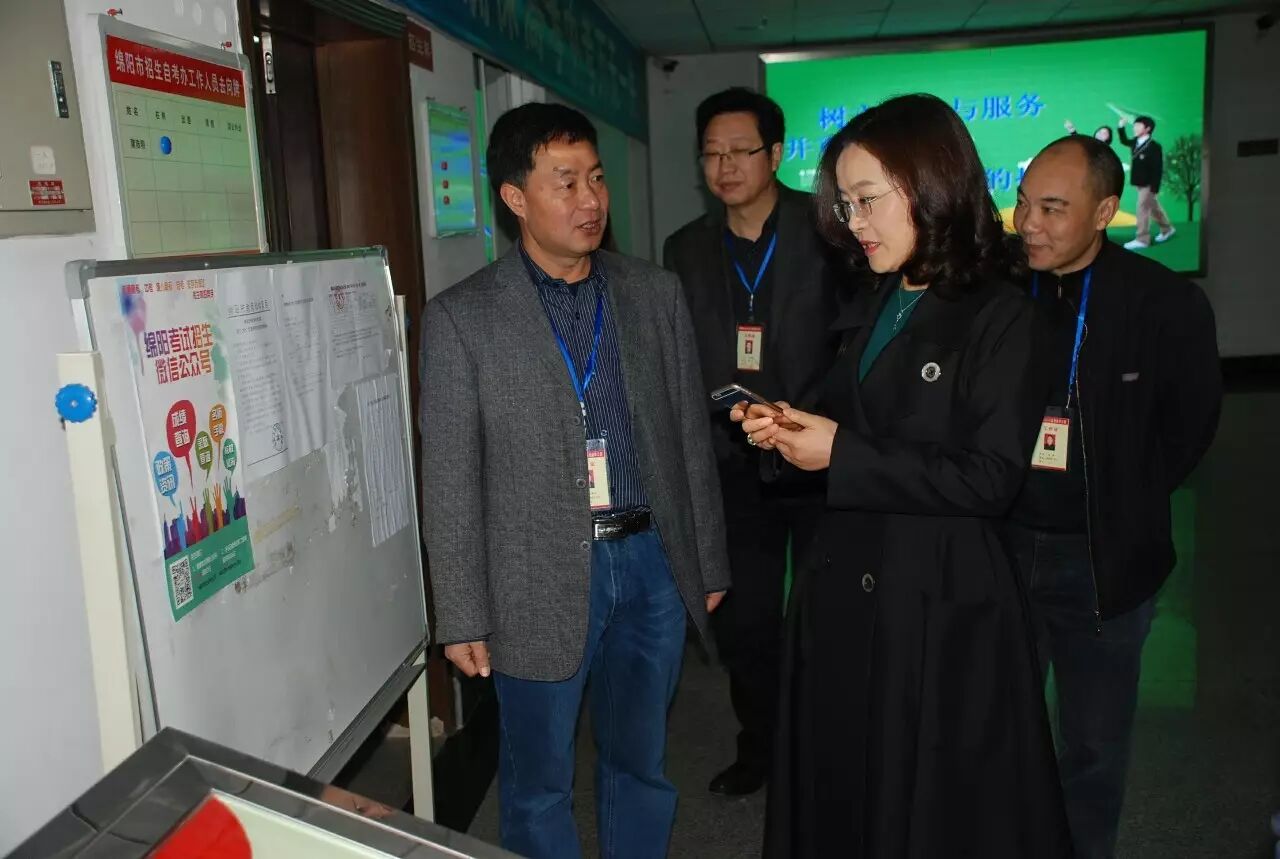 4月1日上午,市政府副市长、市招考委主任蒋丽英、副秘书长、市招考委副主任陶筠一行到市招考办实地调研指导招生考试工作。