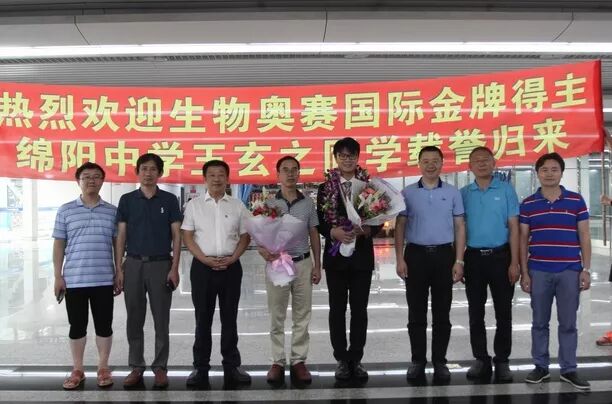 7月24日,国际金牌得主王玄之载誉归来,绵阳市教体局胡东局长出席欢迎仪式,绵阳中学魏东校长到机场迎接,向为国争光、为绵阳争光的王玄之同学和张洪忠教练表示热烈的祝贺。